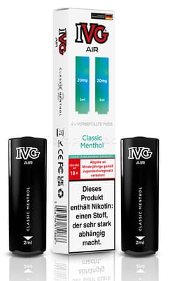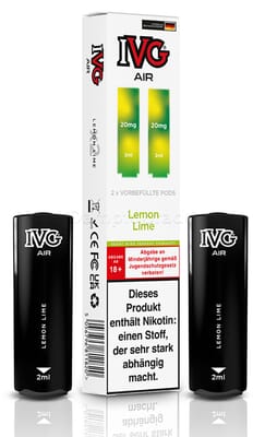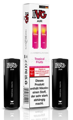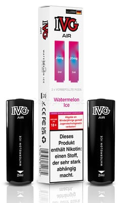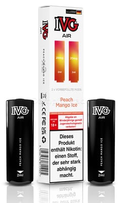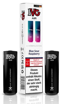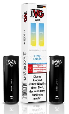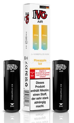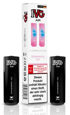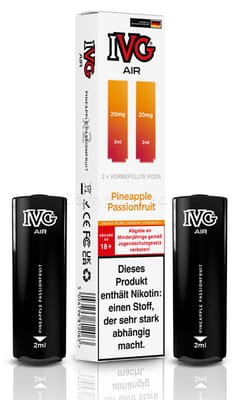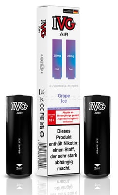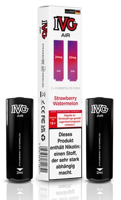 Diese vorbefüllten Pods sind mit dem IVG Air Pod Kit kompatibel. Die Liquiddepots enthalten 2 ml Liquid mit einem Nikotingehalt von 20 mg/ml.