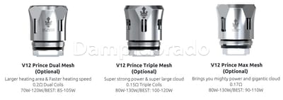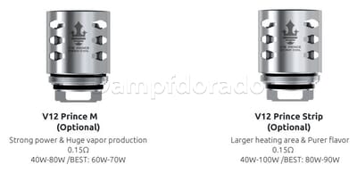 Für einen Leistungsbereich von 40-80W. Das beste Ergebnis erzielen sie zwischen 60-70W. - TFV12 Prince Triple M (Edelstahlsieb) Coil - 0,15 Ohm