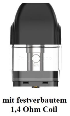 Der Uwell Cartridge kombiniert das Drip Tip (Mundstück) mit dem 2,0 ml Tank zu einer Einheit. Im Pod ist bereits ein Uwell Verdampferkopf mit einem Widerstand von 1,4 Ohm integriert. Der verbaute Coil ist auf MTL bzw. Backendampfen ausgelegt, wodurch der Zugwiderstand sehr stark einer herkömmlichen Zigarette ähnelt. Also perfekt für ehemaliger Raucher, die auf eine E-Zigarette umsteigen möchten.