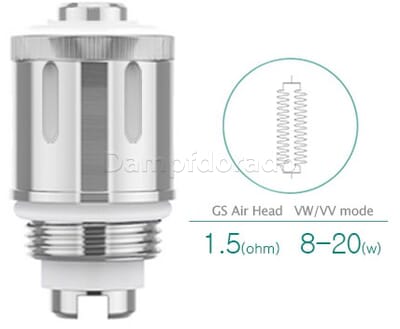 - Die GS Air Dual Coils (1,5 Ohm) sind für Leistungen von 8W bis 20W ausgelegt.