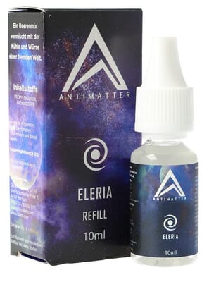 Wir bieten das Antimatter Eleria Aroma als 10 ml Aroma in einer 120 ml PET-Flasche oder auch als praktische 10ml Aroma Nachfüllflasche (ohne 120ml PET-Leerflasche) an.