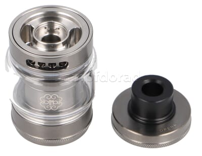 Das Bauchglastank bietet bis zu 5 ml Platz für Liquid, dass bequem über die Top-Cap mit Bajonett-Verschluss befüllt wird. Unter der Top-Cap befindet sich die Top-Airflow-Control, mit der der Zugwiderstand nach eigenen Vorlieben angepasst werden kann.