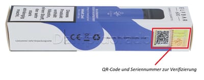 Den QR Code können Sie mit Ihrem Smartphone scannen oder alternativ den Code manuell auf der Webseite von Elfbar eingeben: Elf Bar Original Check.