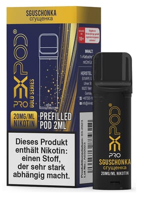 Diese vorbefüllten Pods sind für die Verwendung im ExPod Pro Prefilled Pod Kit gedacht. Die Liquiddepots enthalten jeweils 2 ml Liquid mit einem Nikotingehalt von 20 mg/ml. Ein Prefilled Pod reicht für bis zu 600 Züge und wird danach einfach durch einen neuen ExPod Pro Prefilled Pod ersetzt.