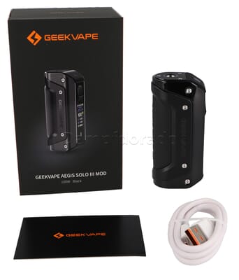 Betrieben wird der Aegis Solo 3 Akkuträger mit einem 18650er Akku (nicht im Lieferumfang enthalten). Dieser ermöglicht dem Mod eine Ausgangsleistung von 100 Watt. Für den Ladevorgang kann der Akku im Mod bleiben oder alternativ mit einem externen Ladegerät geladen werden.