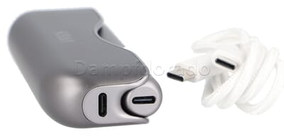 Der Pen besitzt eine integrierte Akkuzelle mit 400 mAh Akkukapazität. Diese spendiert dem KIWI Pen eine Ausgangsleistung von maximal 13 Watt, die den MTL Bereich bestens abdeckt. Mit dem USB Typ-C Kabel kann der Pen direkt aufgeladen werden. Ein Netzteil ist wie üblich nicht im Lieferumfang enthalten. Ist man unterwegs, kann mit der Powerbank ganz ohne Steckdose geladen werden.