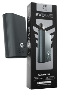 Pod Salt bringt ein eigenes Prefilled Pod Kit "Evolve" im Box-Design samt den beliebstesten Geschmäckern auf den Markt, die diese Marke zu bieten hat. Das Basisgerät verfügt über eine Akkukapazität von 600 mAh und lässt sich einfach und schnell per USB-C Kabel aufladen. Das Ladekabel und ein Ladegerät sind wie üblich nicht im Lieferumfang enthalten.