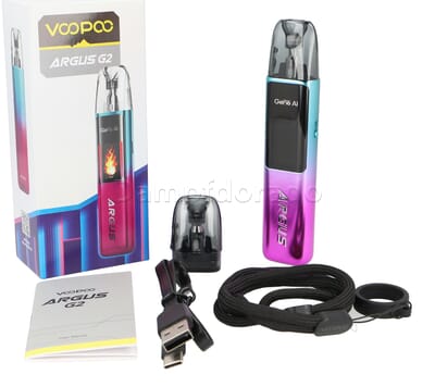 Angetrieben wird das VooPoo Argus G2 Pod Kit von einer integrierten Akkuzelle mit 1000 mAh. Aufgeladen wird diese mit bis zu 2 Ampere Ladestrom per mitgelieferten USB Typ-C Kabel. Das bedeutet gute Akkuausdauer und schnelle Ladezeit! Ein Netzstecker ist wie üblich nicht im Lieferumfang enthalten.