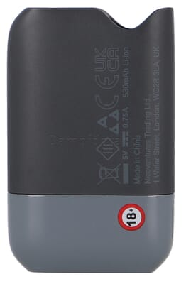 Im Vuse GO Reload wurde eine Akkuzelle mit 530 mAh Akkukapazität fest verbaut und kann binnen kürzester Zeit per USB C-Ladebuchse an der Unterseite des Prefilled-Kits geladen werden.